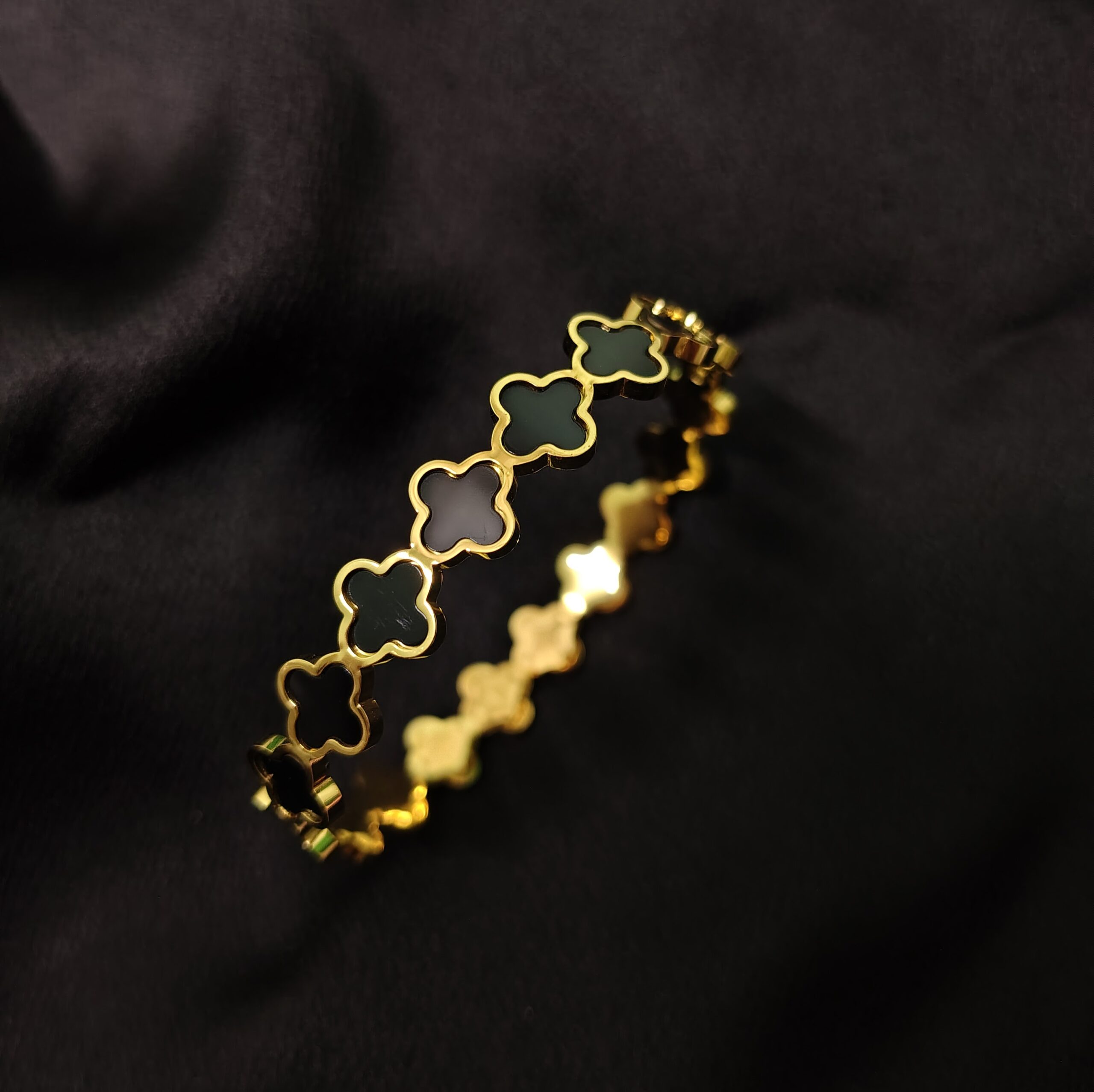 Premium Openable Anti-Tarnish Kada – Gold Plated Clover Design Bangle for Women (Black)